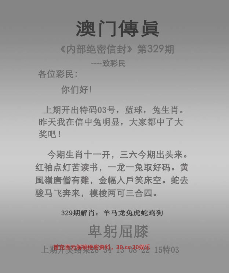 | 328期 今期生肖一八开,六六大顺二八来 红波特码发两头,平步青云折桂枝 牛羊对冲中为特,细数今期要中彩 狗随梗上打三回,成双成对四八中 |